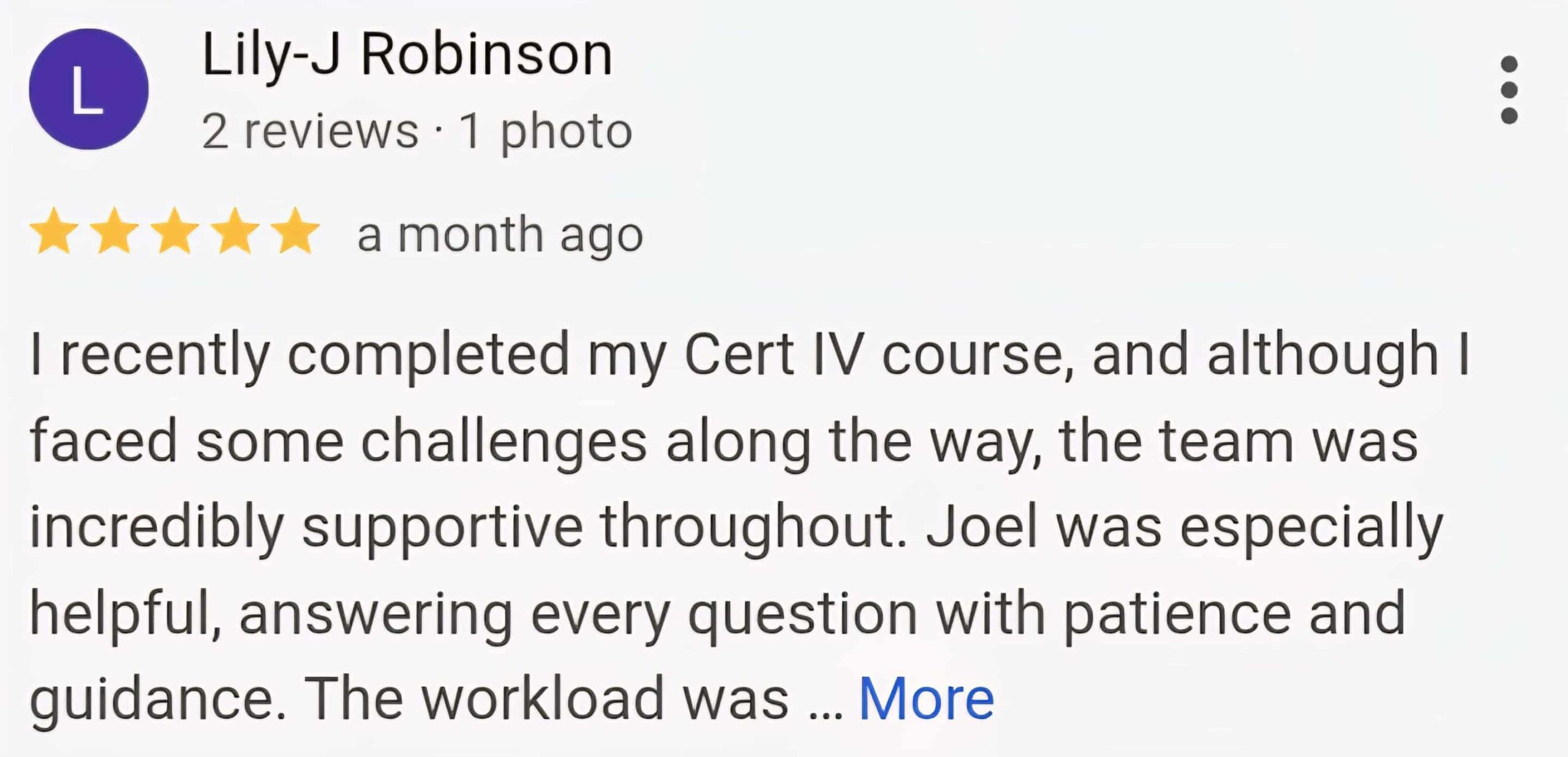 Having access to a mentor, and using both of our Fast Track and Practical Intensives programs, this busy mum has been able to completely transition industries, and we couldn't be prouder of her!